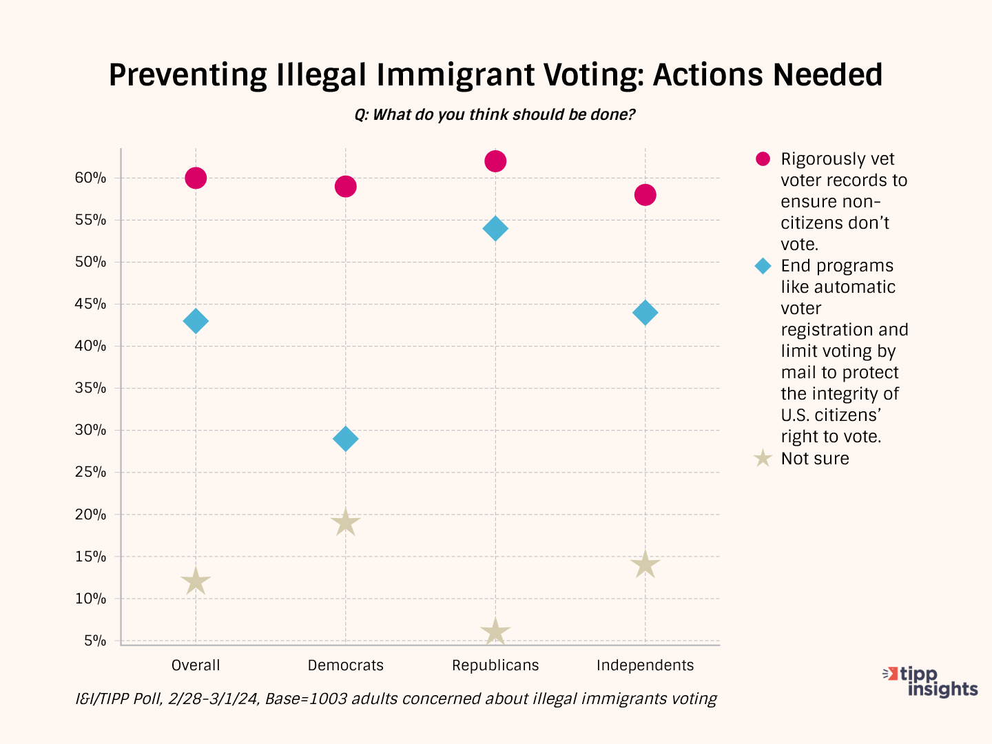 The lesson to be drawn from these data? Across the board, Americans think illegal immigrants voting in our elections is a potential problem, and a solid majority would support common-sense solutions to ensure it doesn't happen.