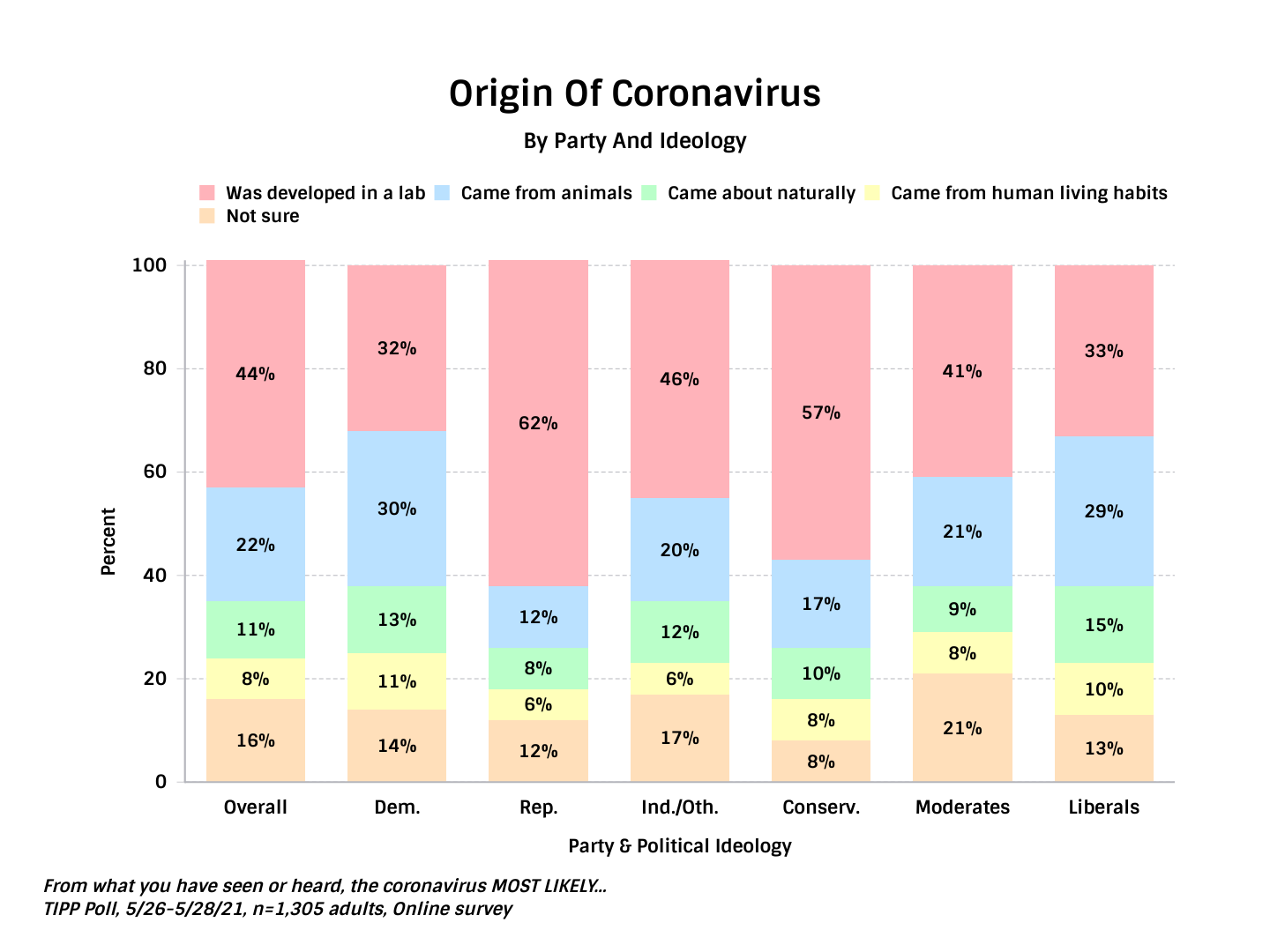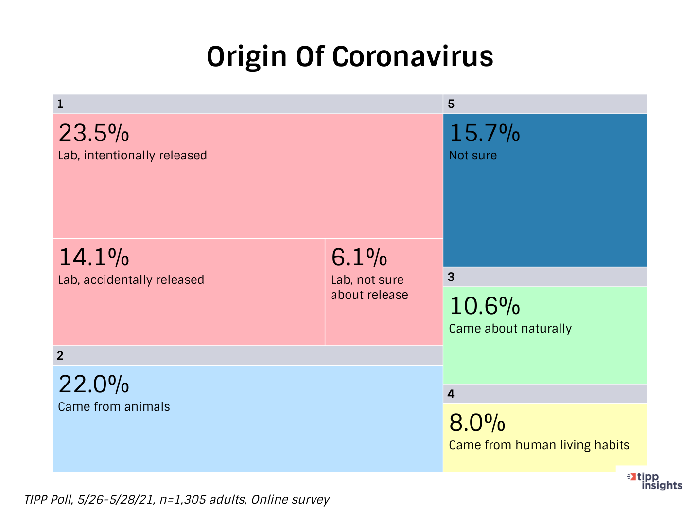 More than fifteen months after it was declared a pandemic, little is concretely known about the virus itself. Just as the Wall Street Journal broke the sensational story (more about that later), TechnoMetrica conducted a TIPP Poll asking Americans what they believe regarding the origin and spread of the virus.