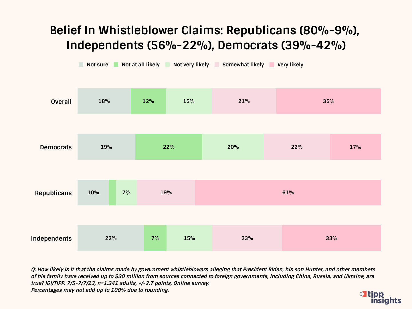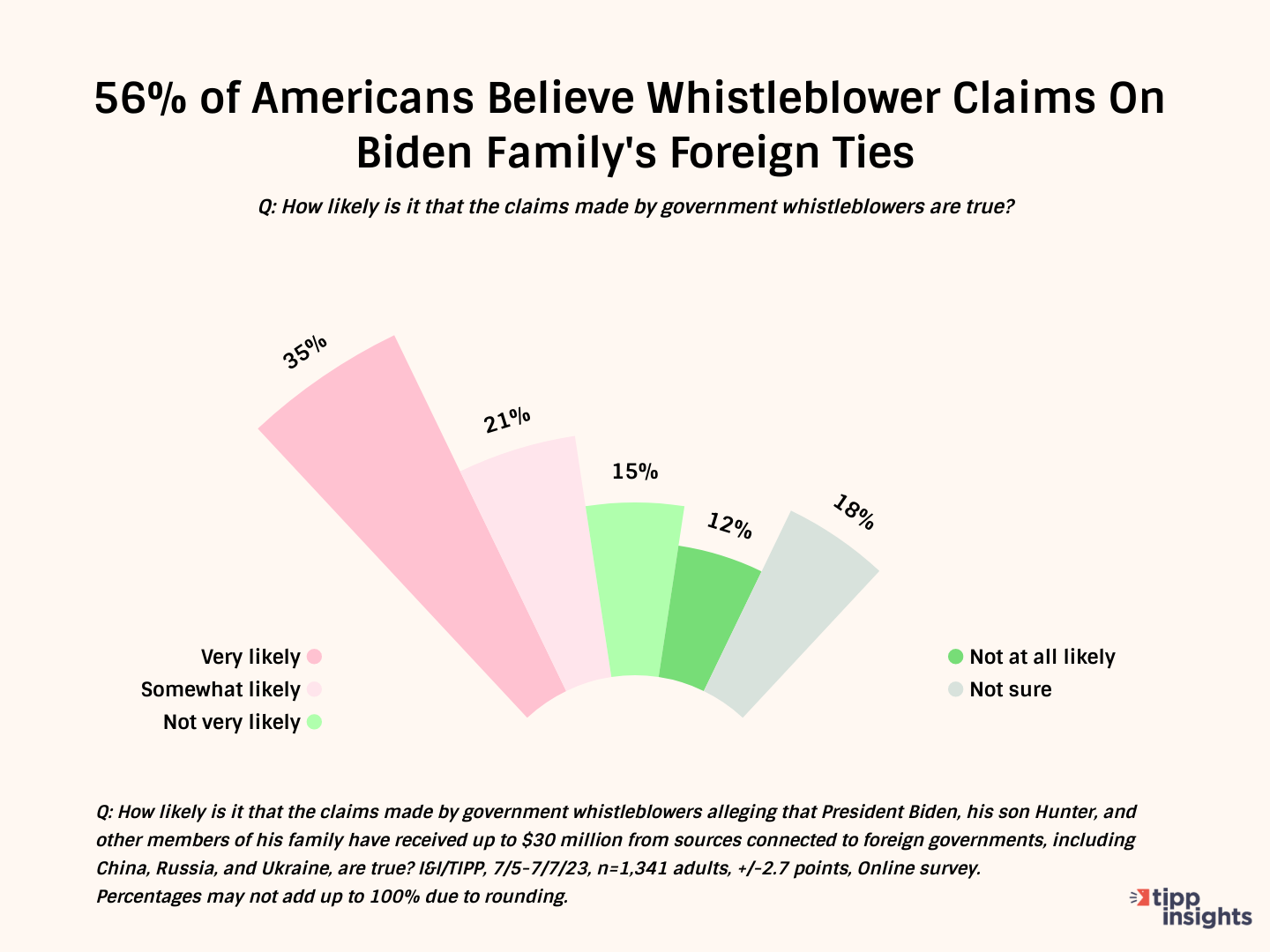 Whistleblowers allege President Joe Biden and his family have taken up to $30 million in illicit bribes and payments from foreign sources tied to China, Russia and Ukraine. Biden denies it. Do Americans believe him? No. By more than 2-to-1, they say they believe the whistleblowers, the latest I&I/TIPP Poll shows.