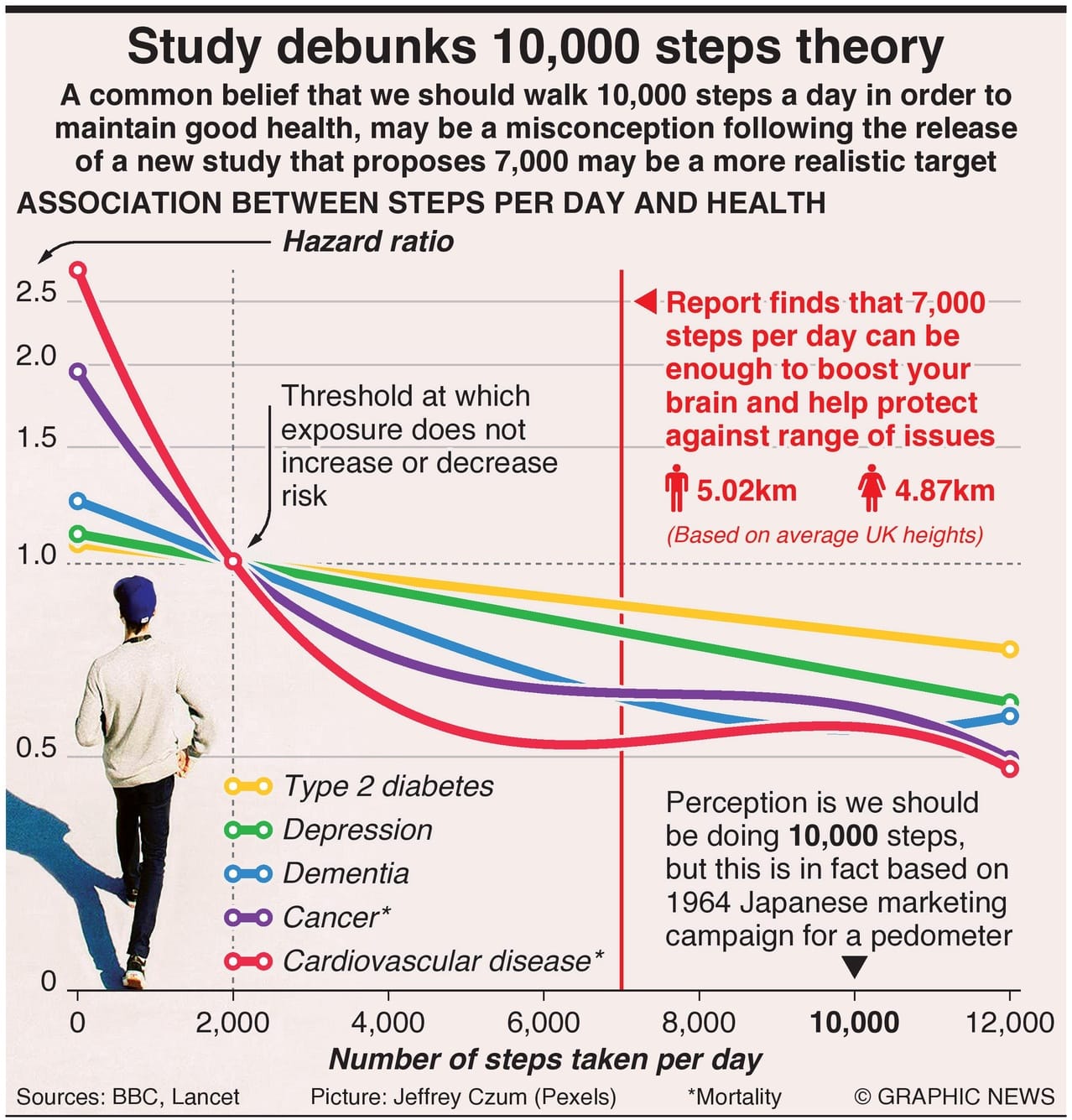 A common belief that we should walk 10,000 steps a day in order to maintain good health, may be a misconception following the release of a new study that proposes 7,000 may be a more realistic target.