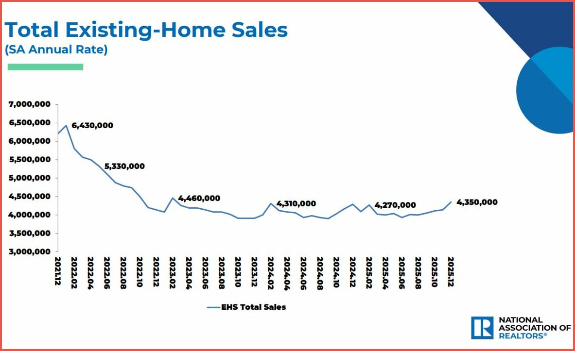 Existing-home sales in December were the strongest in nearly three years, helped by slightly lower mortgage rates. Even so, sales remain well below pre-2022 levels, suggesting the housing market is stabilizing—not rebounding.