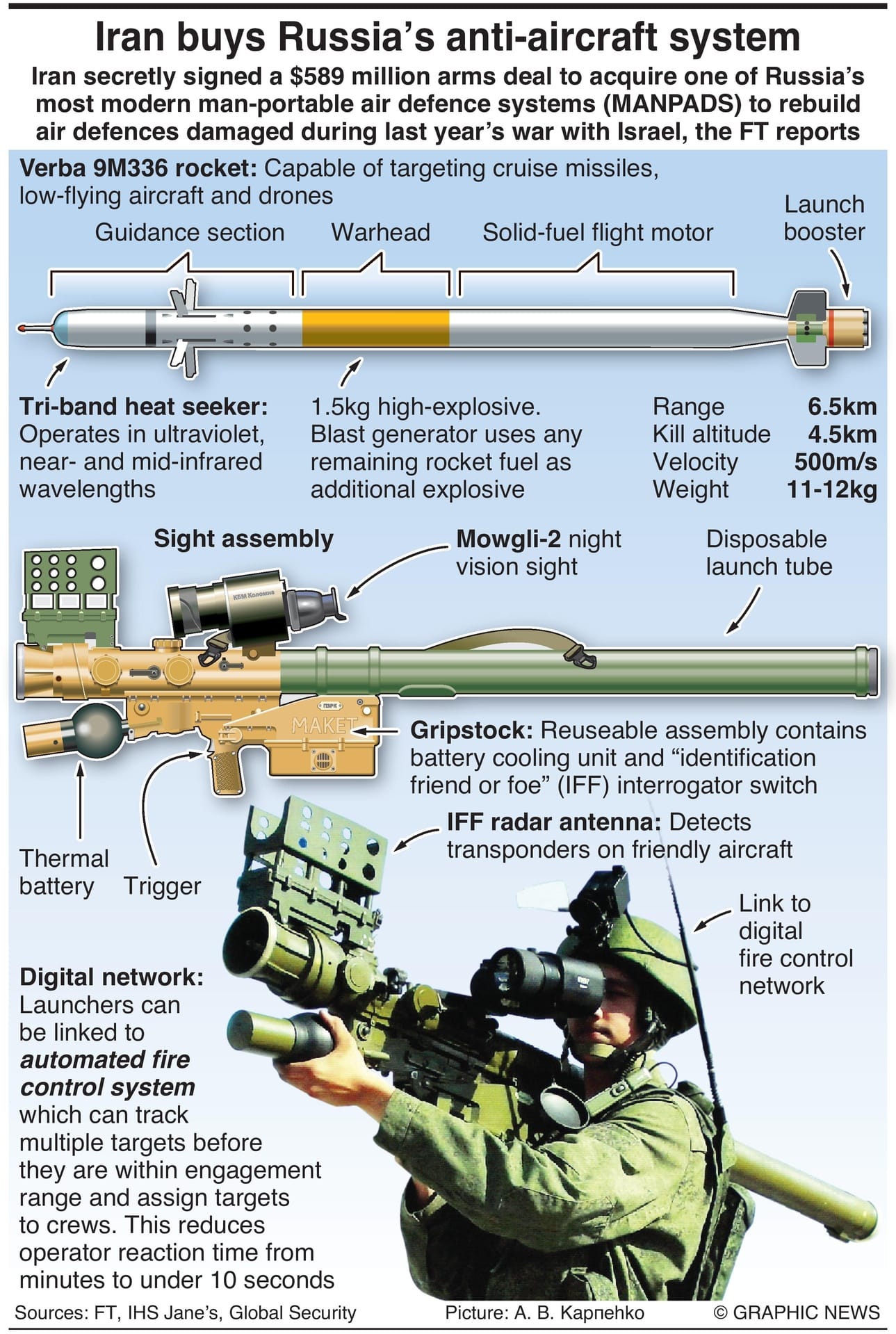 Iran secretly signed a $589 million arms deal to acquire one of Russia’s most modern man-portable air defense systems (MANPADS) to rebuild air defenses damaged during last year’s war with Israel, the FT reports.
