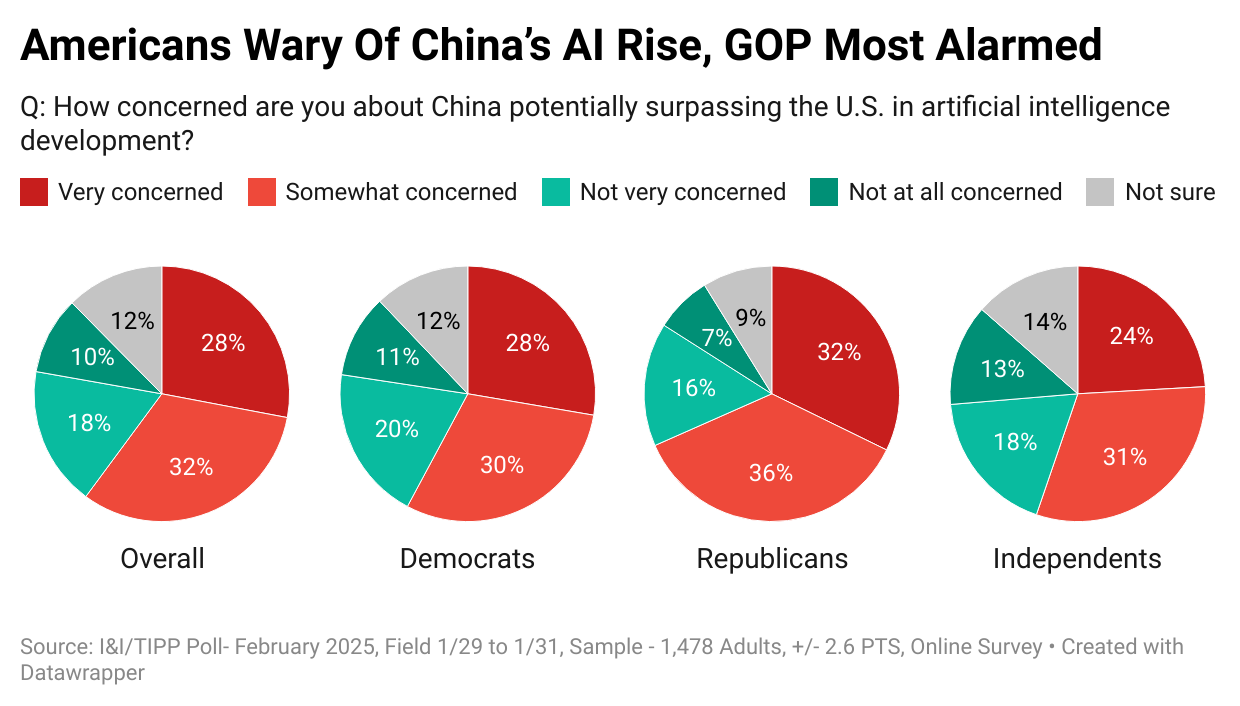 The first question: “How concerned are you about China potentially surpassing the U.S. in artificial intelligence development?”