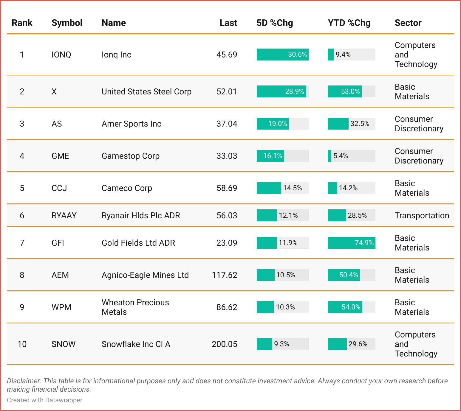 Tickers: IONQ | X |AS | GME | CCJ | RYAAY | GFI | AEM | WPM | SNOW