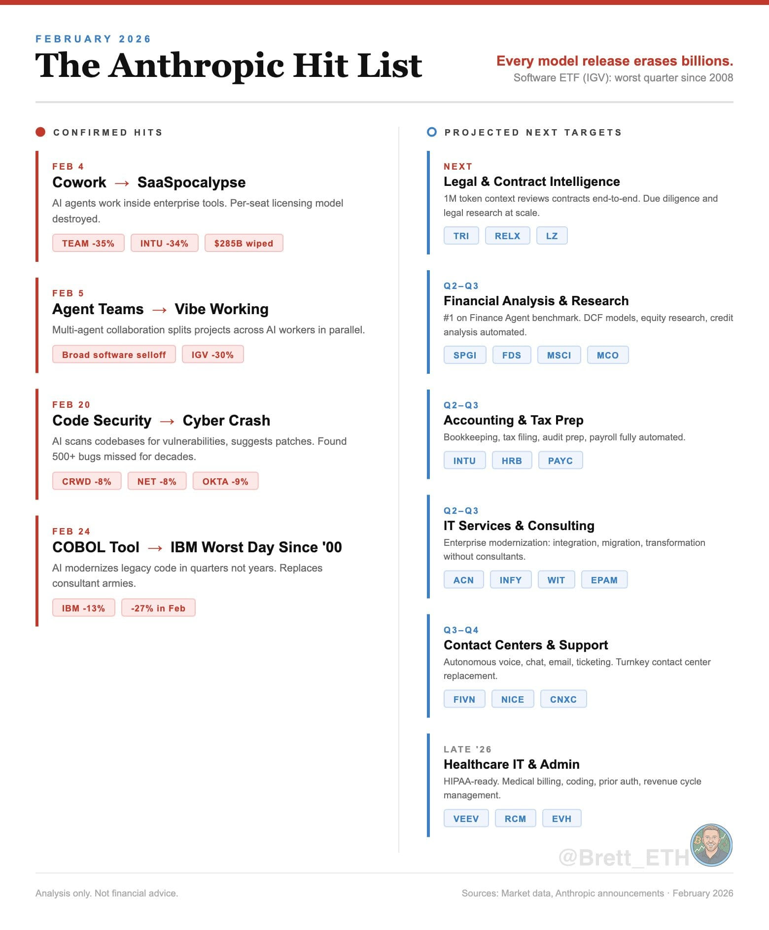 Several recent AI product launches have triggered sharp sell-offs in software companies. When new AI tools show they can automate tasks like coding, legal research, accounting, or cybersecurity scanning, investors quickly reassess which companies might lose business. In some cases, stocks have dropped 10% to 30% in days. The market is signaling that AI could disrupt large parts of the traditional software industry.