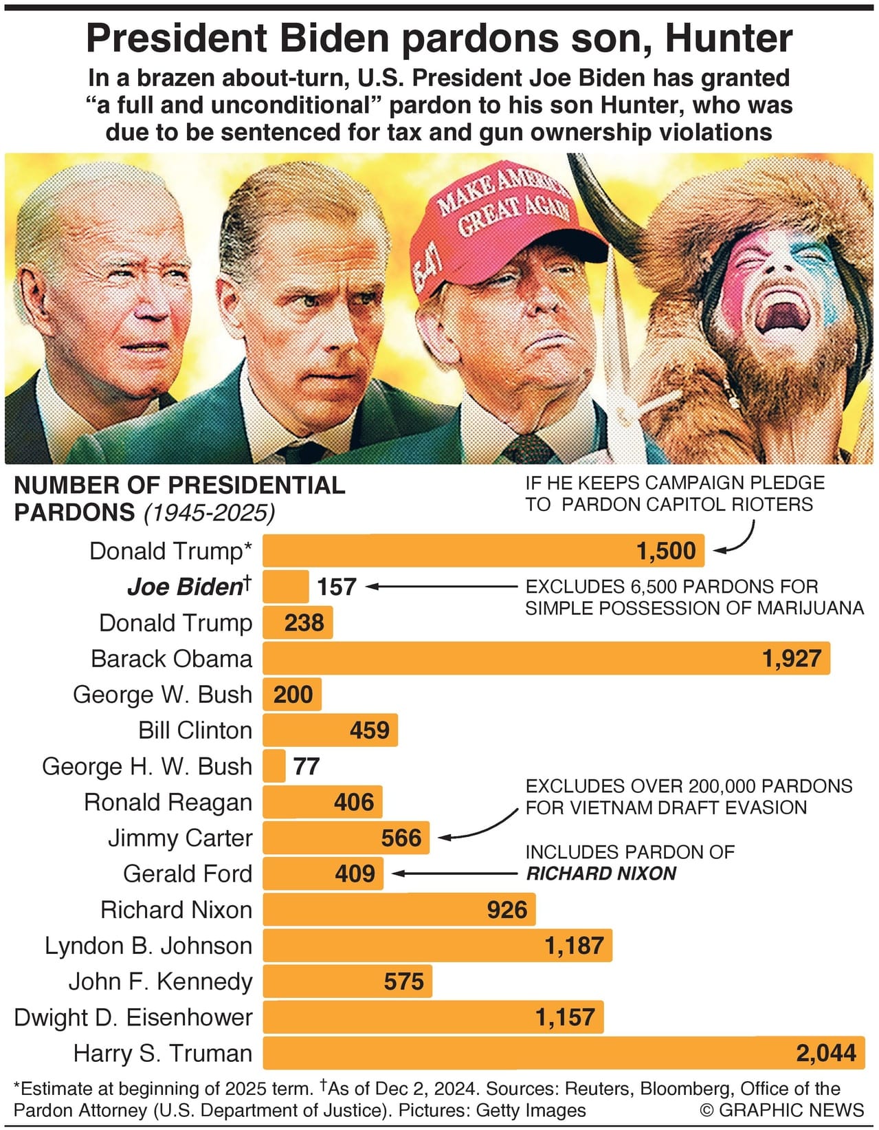 Despite repeated assurances from President Biden and his staff that he would not pardon his son Hunter Biden due to be sentenced for tax and gun ownership violations, in an unexpected reversal, the President issued a “full and unconditional” pardon over Thanksgiving weekend, absolving Hunter of any crimes he committed or may have committed since 2014.
