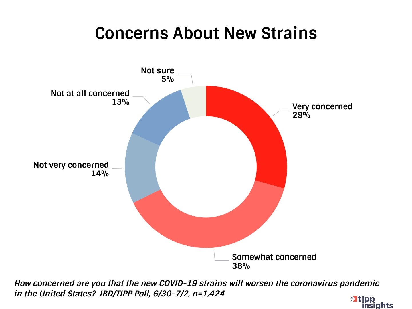 An Investor’s Business Daily/TIPP Poll surveyed over 1400 Americans to gauge their thoughts on the subject. They were asked, “How concerned are you that the new COVID-19 strains will worsen the coronavirus pandemic in the United States?”