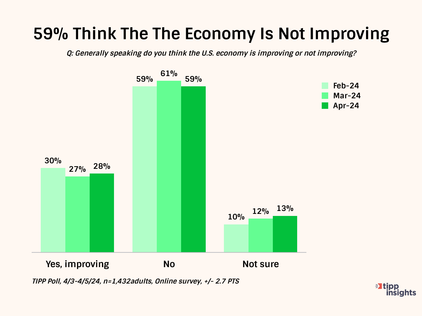 Further, over one-half (59%) think the U.S. economy is not improving, while 28% believe it is improving.