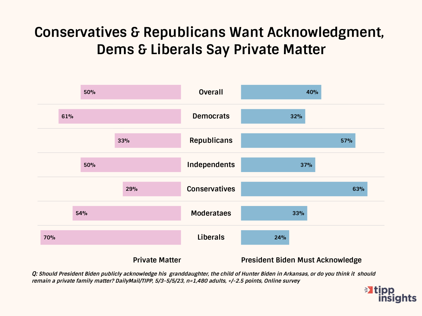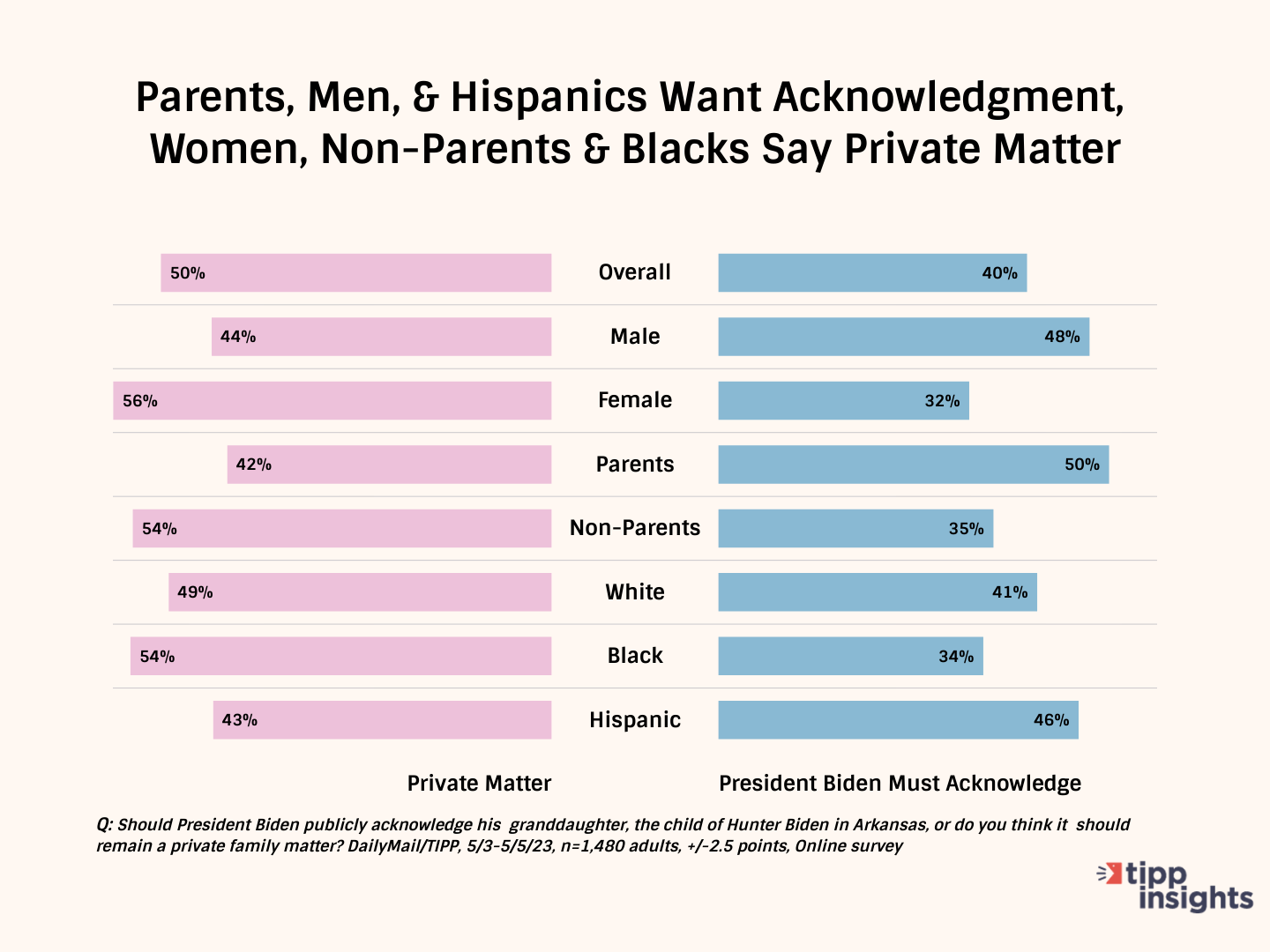 But the US public is divided over the sensitive issue. Many others, including Democrats, liberals, and those without children, call it a 'private family matter' that the Bidens must manage for themselves.