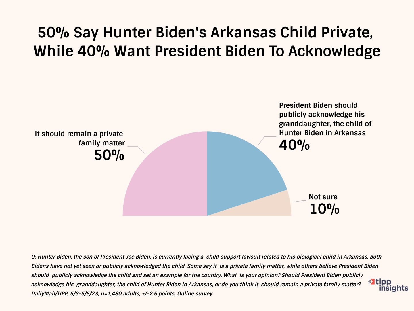 The TIPP Poll of nearly 1,500 Americans was carried out after Hunter's court appearance this month in Independence County, Arkansas, over how much child support the First Son should pay.