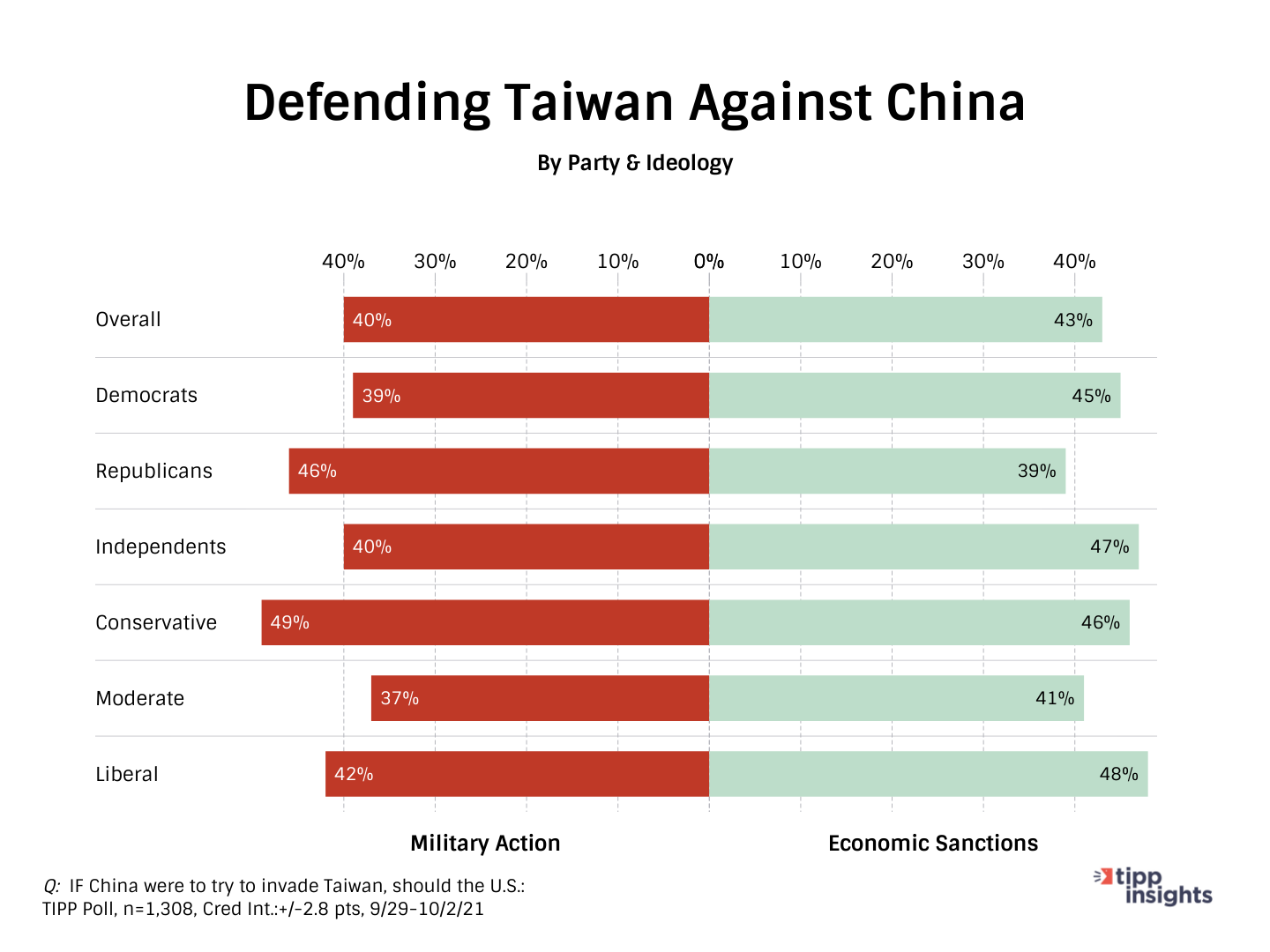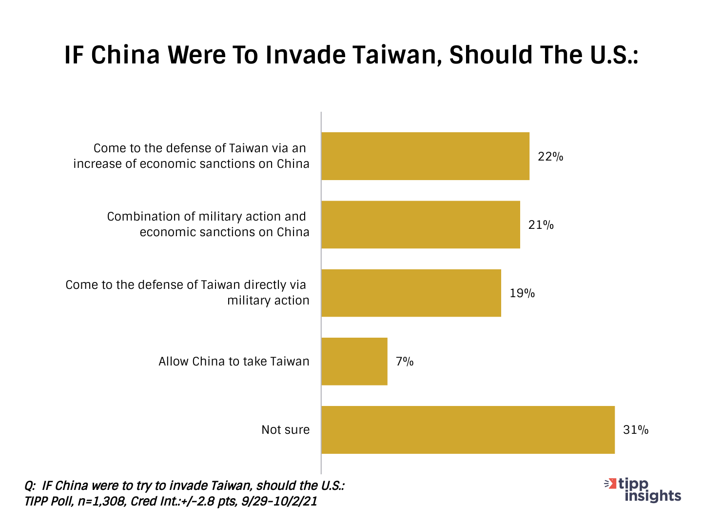 In the TIPP Poll of 1,308 Americans completed on Saturday, we asked, "IF China were to try to invade Taiwan, should the U.S:"