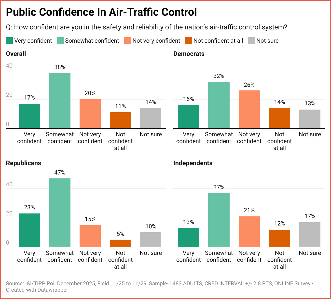The I&I/TIPP Poll asked two related questions, the first being: “How confident are you in the safety and reliability of the nation’s air-traffic control system?”