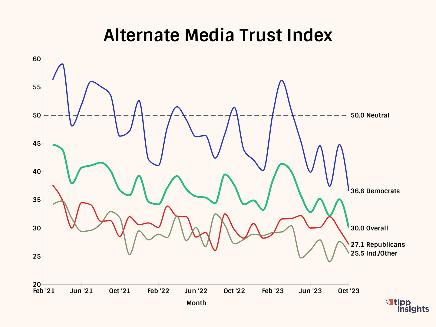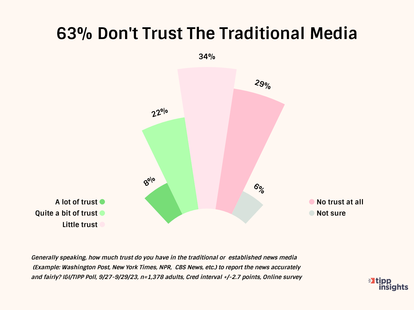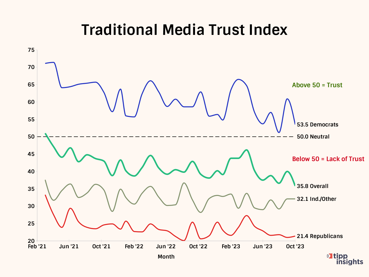 The I&I/TIPP data aren’t the only to show this decline in media trust. Gallup, and others, have shown similar trends. It portends an ugly year ahead, as the nation prepares for an already-contentious 2024 presidential contest.