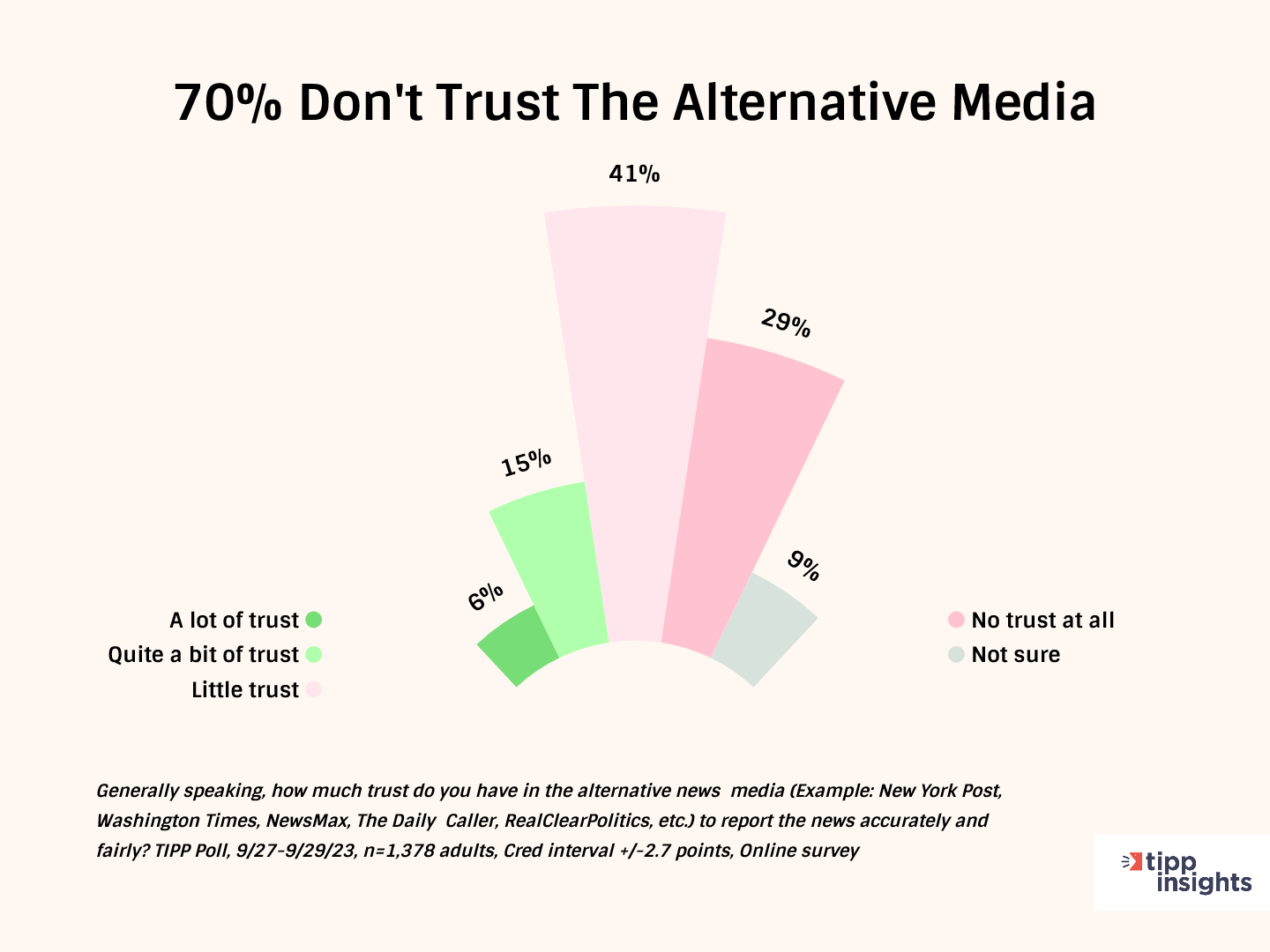Second, “Generally speaking, how much trust do you have in the alternative news media (Example: New York Post, Washington Times, NewsMax, The Daily Caller, RealClearPolitics, etc.) to report the news accurately and fairly?”