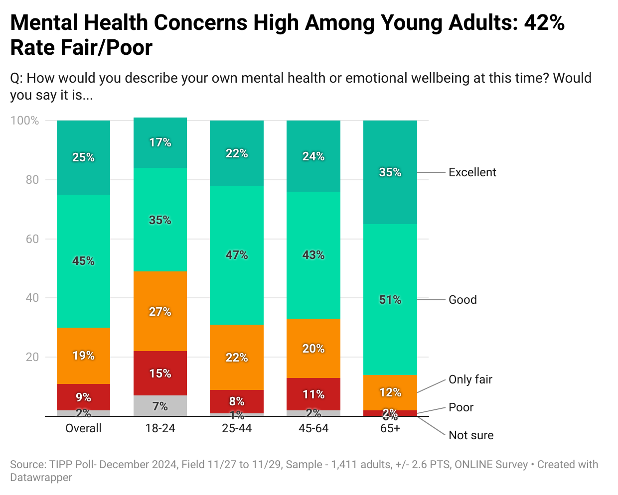 A nationwide TIPP Poll of 1411 people, conducted at the end of 2024, confirmed that Americans are aware of the problem and concur with the medical professionals. More than four-fifths agreed that the country was facing a mental health crisis.