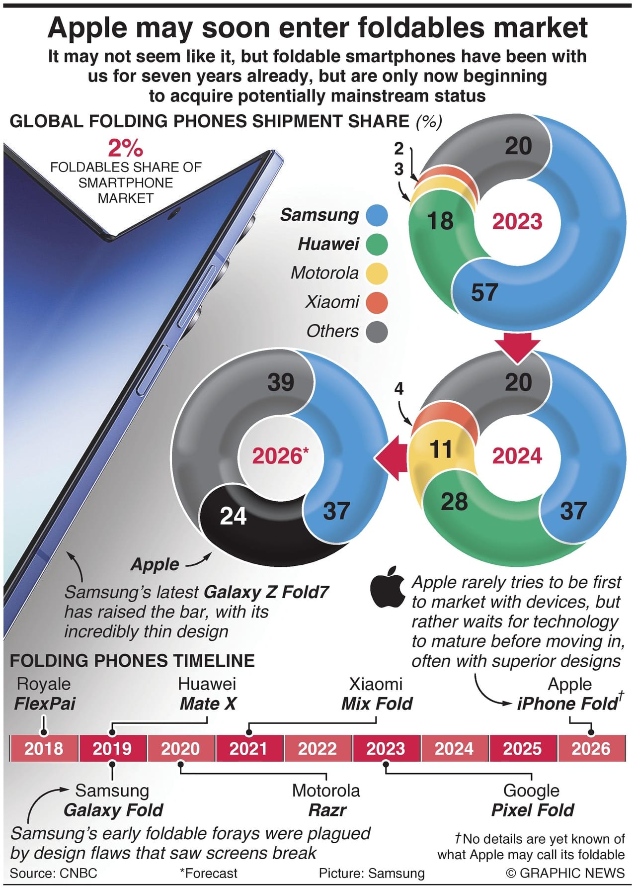 Strong rumours suggest that Apple is planning to launch its first foldable iPhone in 2026, entering a market dominated by Samsung and Huawei who control 65% of it between them.