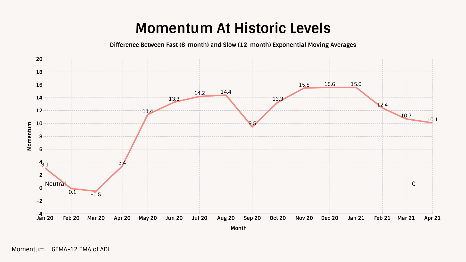 The average ADI for the fourteen months since the pandemic began is 167, compared to 185 this month.