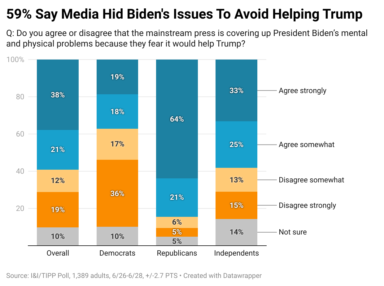 So the bulk of Americans saw the media as complicit in hiding Biden's mental slide.