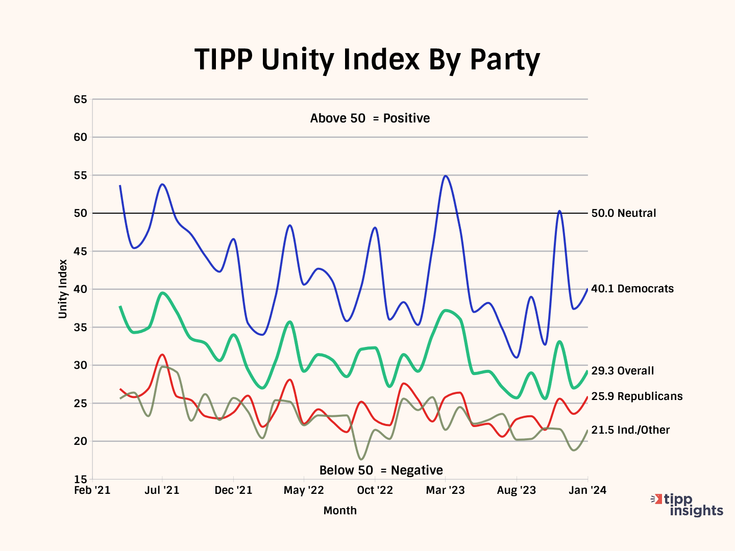 The chart shows the answers to the question from the TIPP Poll of 1,401 adults completed in early January 2024.