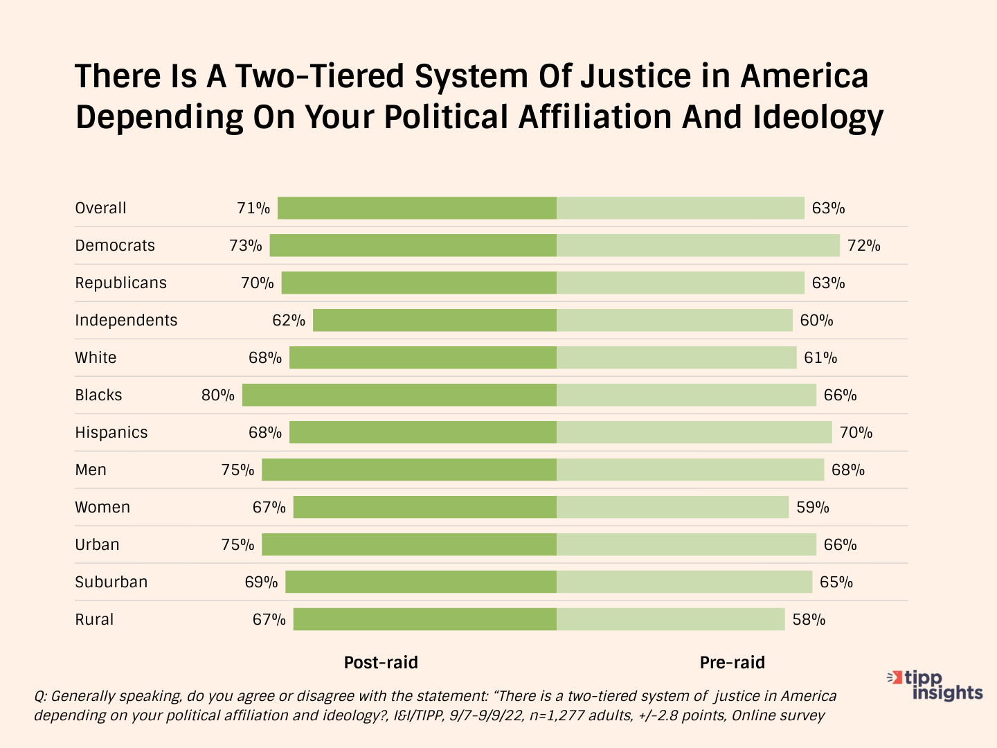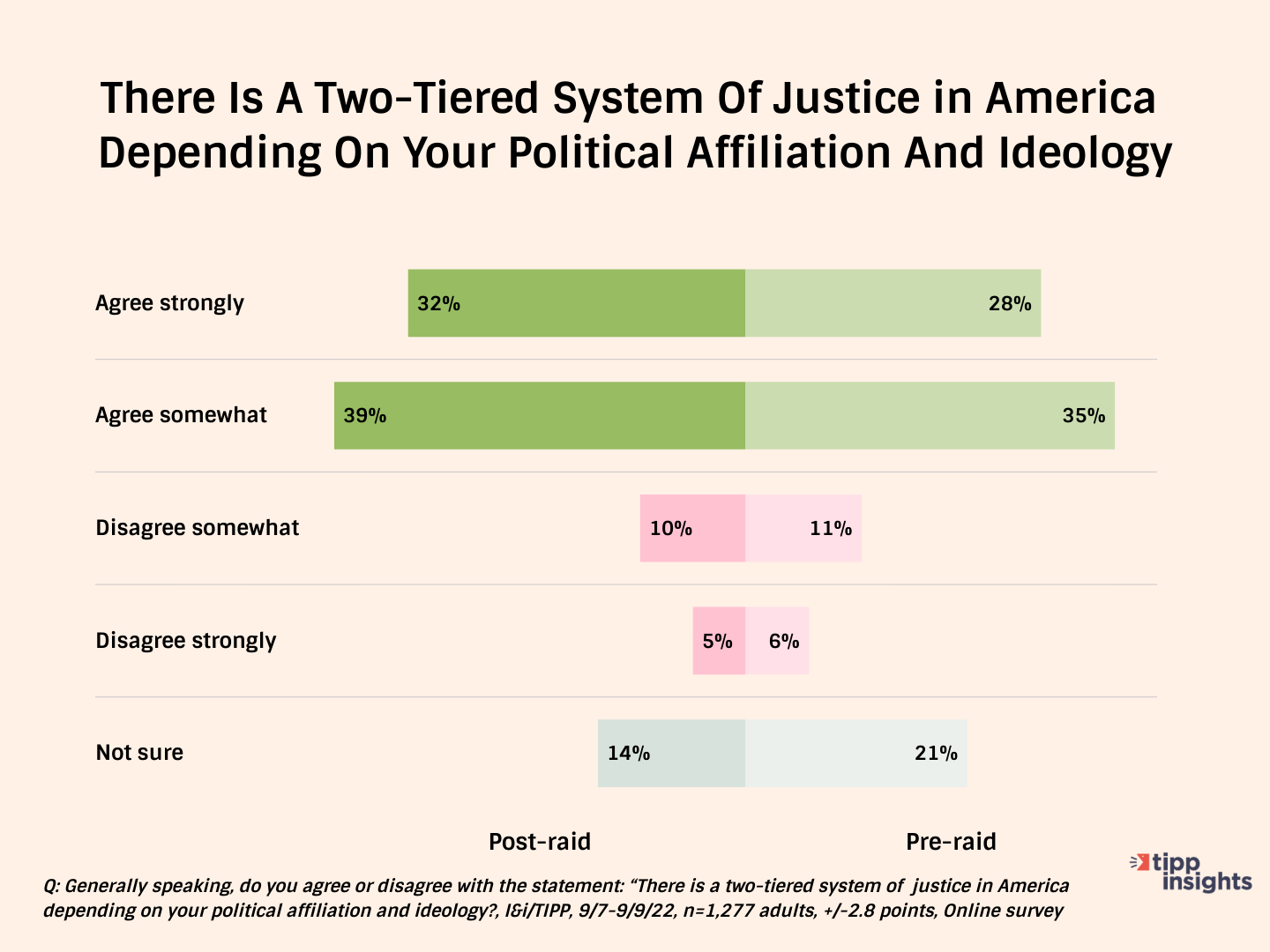 The latest online survey of 1,277 voters found a significant increase from 63% to 71% of those saying they agreed that we now have a “two-tiered system of justice,” with 32% agreeing “strongly” and 39% agreeing “somewhat.”