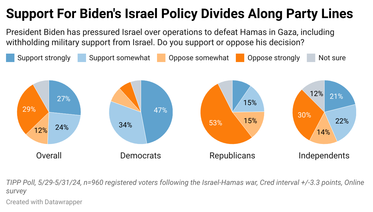 The Biden administration threatened last month to withhold military aid from Israel if the IDF launched an operation in Rafah, the last Hamas stronghold in Gaza and the believed location of most of the remaining Israeli hostages. Superficially, the threat is a misguided concern for protecting civilians, though in reality, it is an equally misguided re-election strategy. Based on data from TIPP Insights, it appears the White House’s foray into abandoning one of America’s closest allies will accomplish neither.