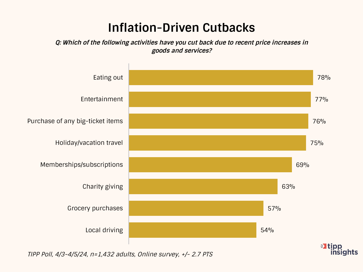 American consumers are pessimistic, as indicated by the RealClearMarkets/TIPP Economic Optimism Index, a leading gauge of consumer sentiment. Further, reports show that consumers are pulling back, impacting sales this quarter at Starbucks, KFC, and McDonald’s.