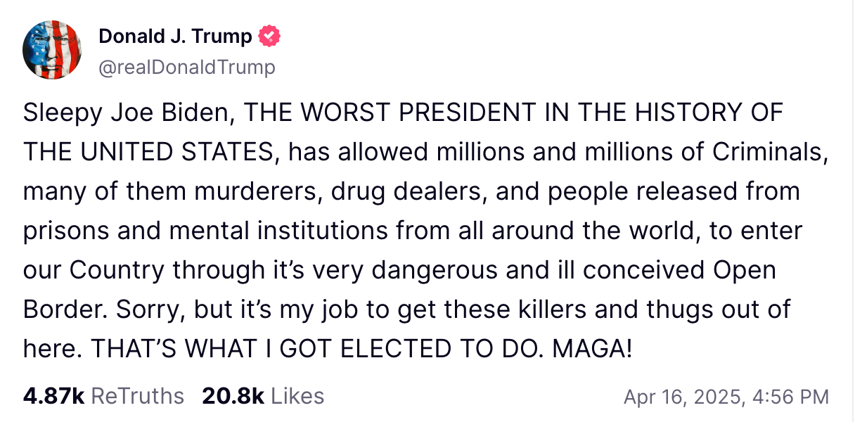 In his first major public address since leaving office, former President Joe Biden spoke out in defense of the Social Security Administration, criticizing deep staffing cuts and office closures under President Donald Trump’s administration. Speaking in Chicago to disability rights advocates, Biden called Social Security a “sacred promise,” accusing the administration of taking a “hatchet” to the agency. Trump, in a post on Truth Social, fired back at Biden, saying this:
