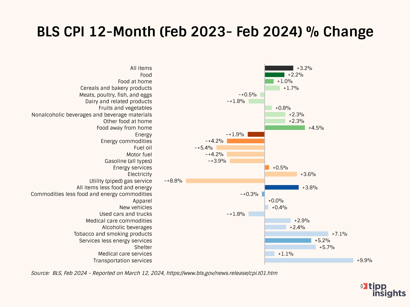 The government's Consumer Price Index (CPI), released on Tuesday, showed a 3.2% year-over-year price increase from February 2023 to February 2024.