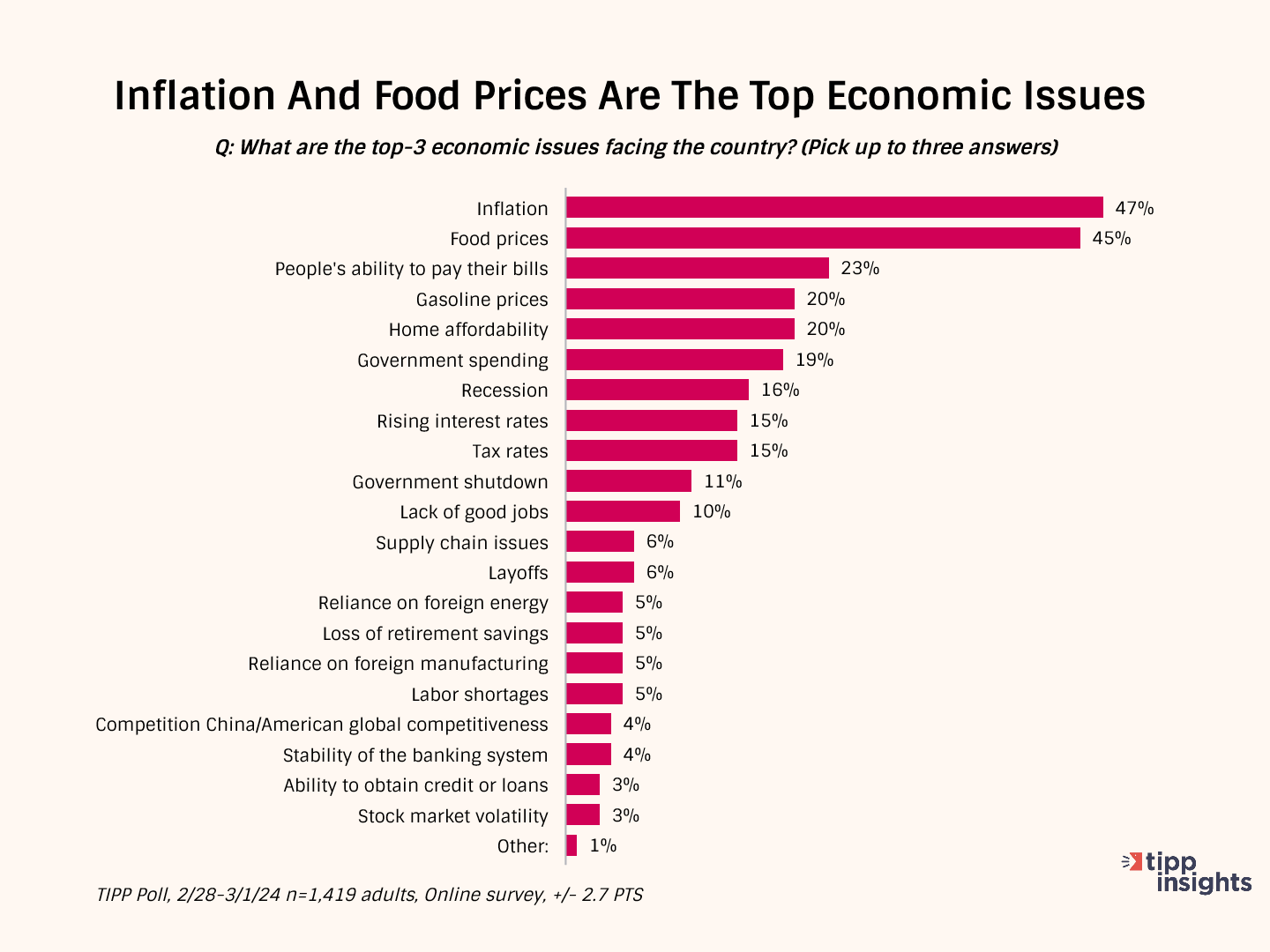 Therefore, it is no surprise that inflation and food prices emerged as top economic issues among Americans in a recent nationwide TIPP Poll.