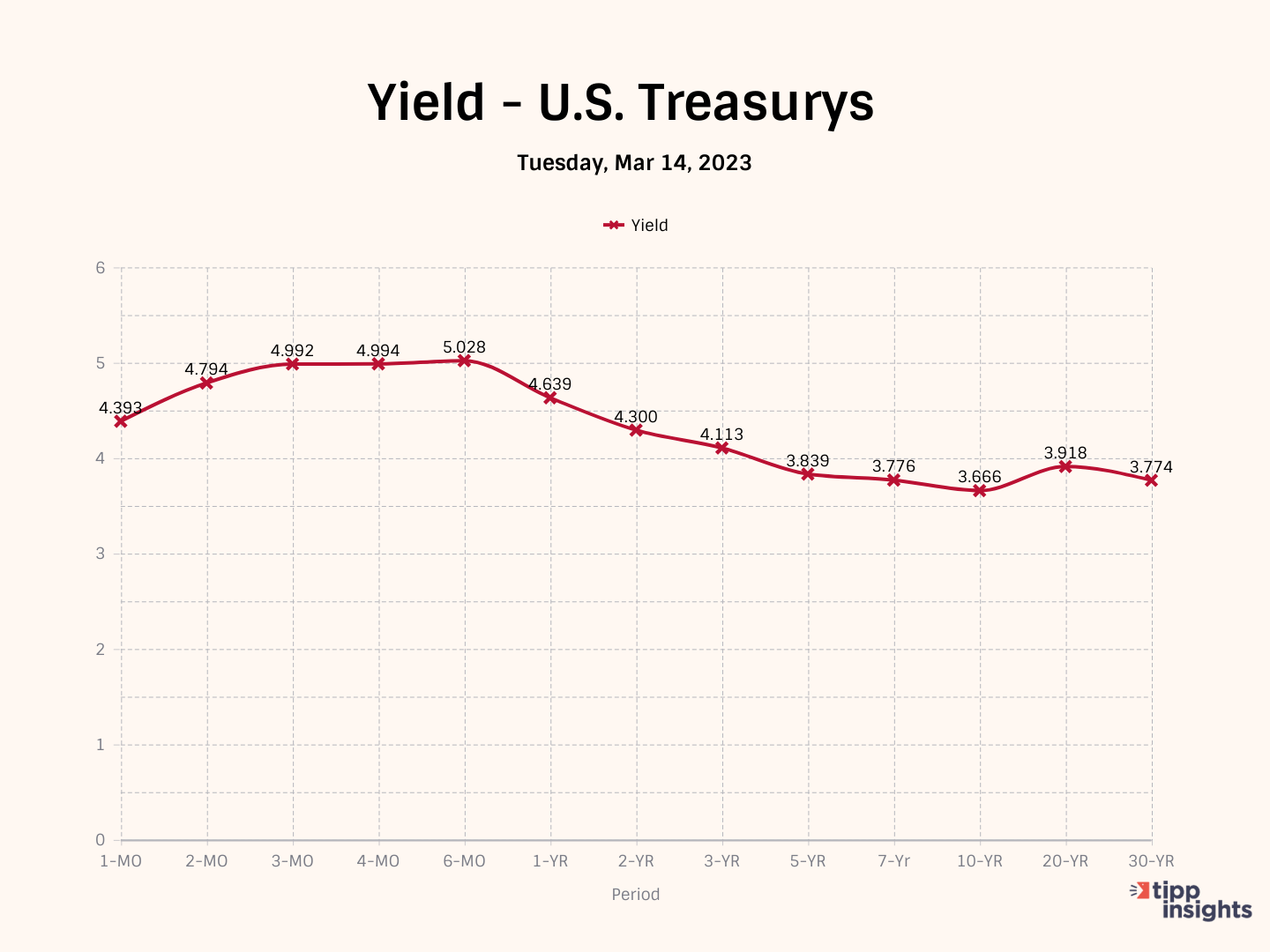 Treasury yields rose on Tuesday. With an inverted yield curve, short-term U.S. treasuries are paying higher interest rates than long-term U.S. treasuries: