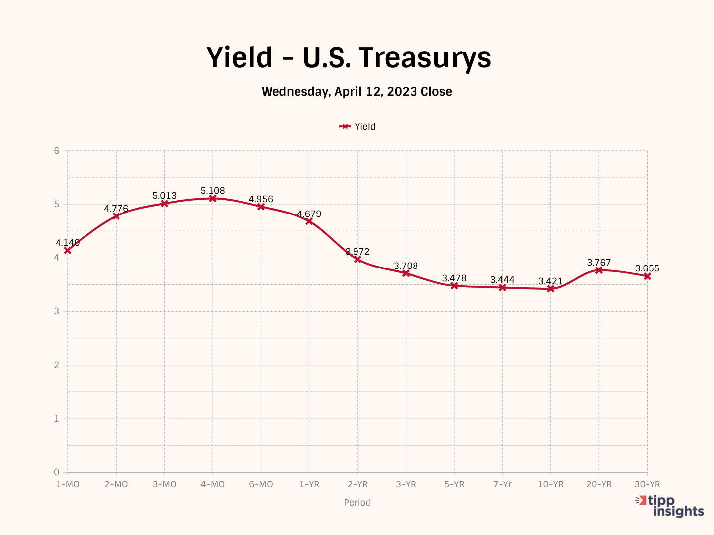 With an inverted yield curve, short-term U.S. treasuries pay higher interest rates than long-term U.S. treasuries. The closing yields on Wednesday were: