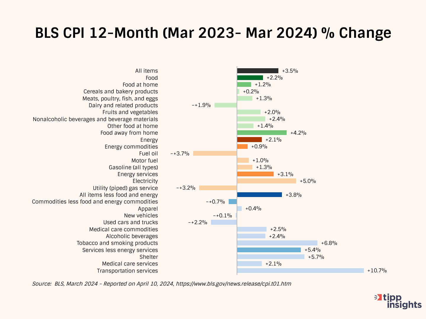 The government's Consumer Price Index (CPI), released on Wednesday, showed a 3.5% year-over-year price increase from March 2023 to March 2024.