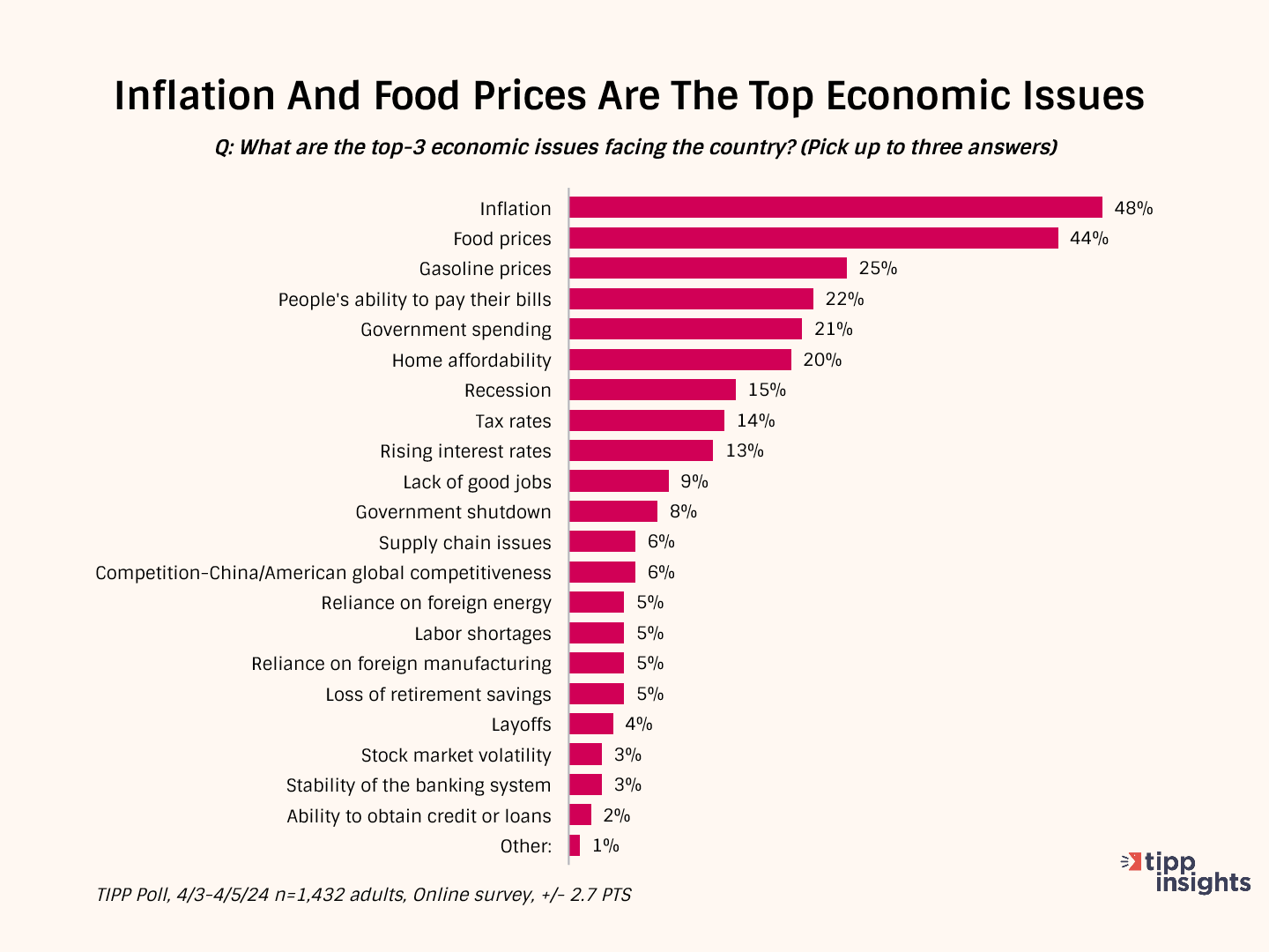Therefore, it is unsurprising that inflation and food prices emerged as top economic issues among Americans in a recent nationwide TIPP Poll.