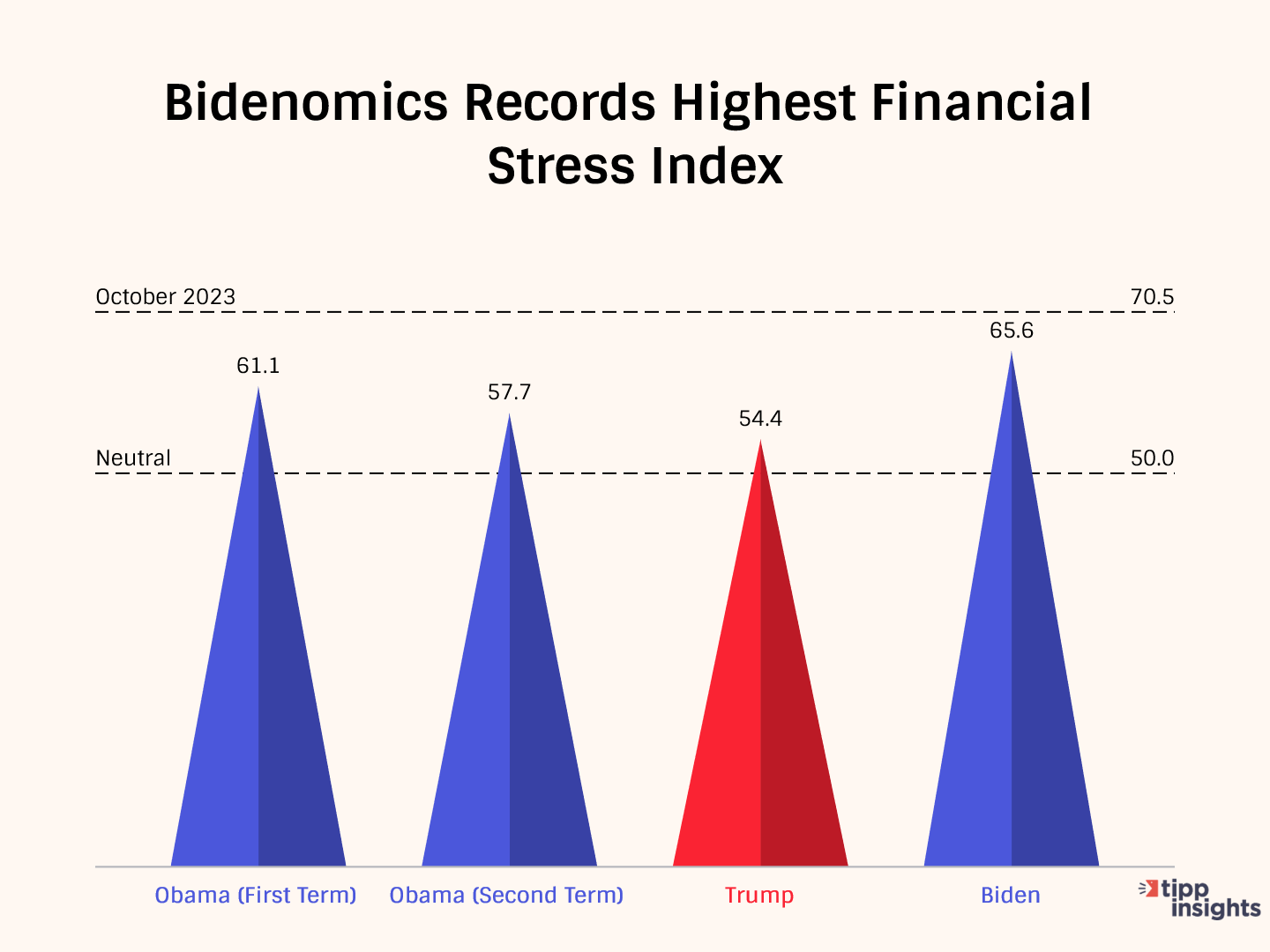- Under Biden's policies, the average financial stress level stands at 65.6, higher than during the first and second terms of Obama and Trump's presidencies