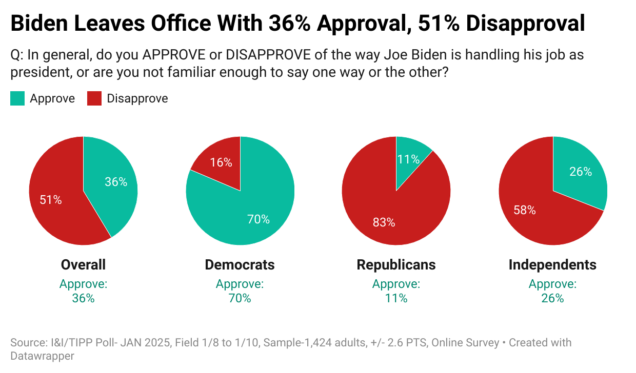 The days remaining for the Joe Biden-Kamala Harris administration are few, but before they go, it's only fair to ask Americans what kind of job the pair did over the last four tumultuous years. As it turns out, data from the latest I&I/TIPP Poll suggest, voters will not be sad to see this Democratic tenure come to an end.