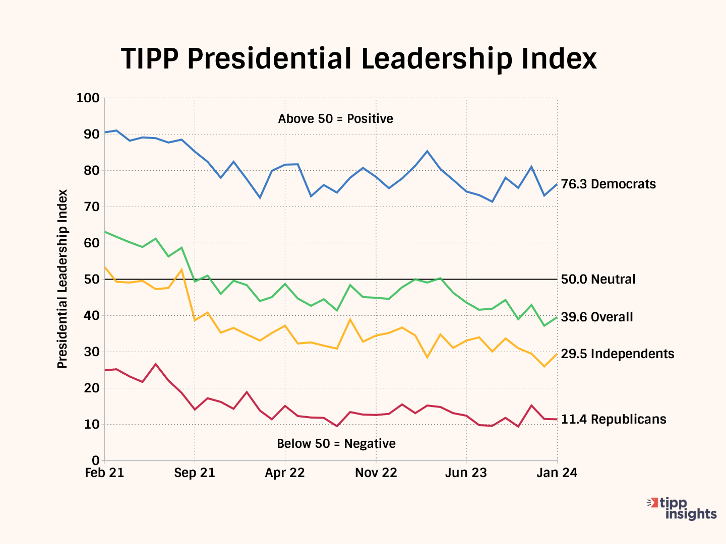 TIPP developed the Presidential Leadership Index to facilitate easy tracking, an innovative metric considering favorability, job approval, and Presidential Leadership.