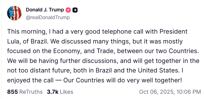 Lula described the conversation as a chance to “restore the 201-year friendship” between the two nations and invited Trump to the COP30 climate summit in the Amazon.