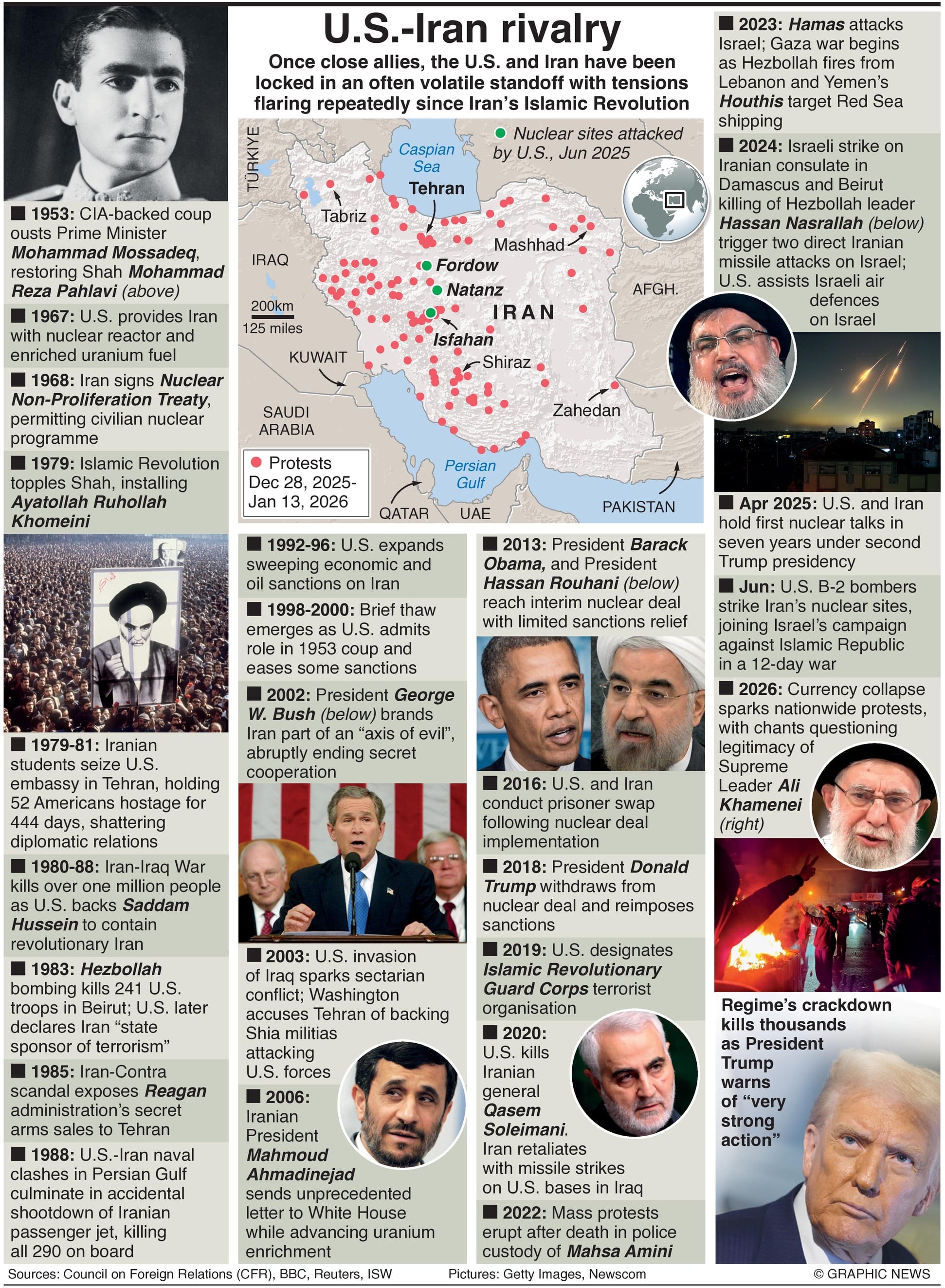 Once close allies, the U.S. and Iran have been locked in an often volatile standoff with tensions flaring repeatedly since Iran’s Islamic Revolution.