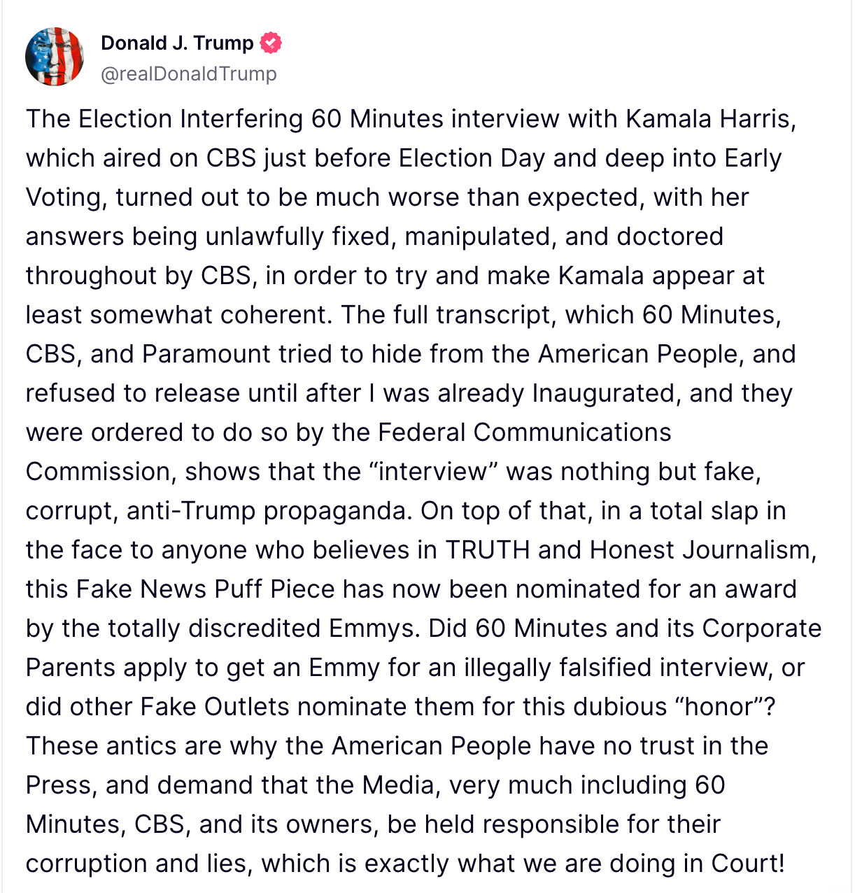 Trump claims the Harris interview was deceptively edited to downplay her confusion, calling it “election fraud” and a “true winner” of a case. Paramount is reportedly considering a settlement, with chairwoman Shari Redstone favoring resolution over a potentially damaging discovery phase.