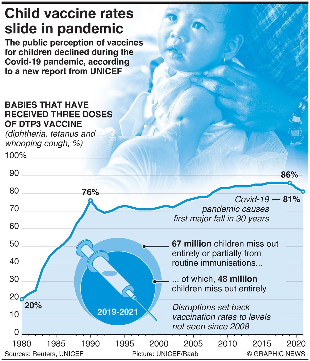 According to new UNICEF data, 67 million children missed out on one or more potentially lifesaving vaccines during the pandemic.