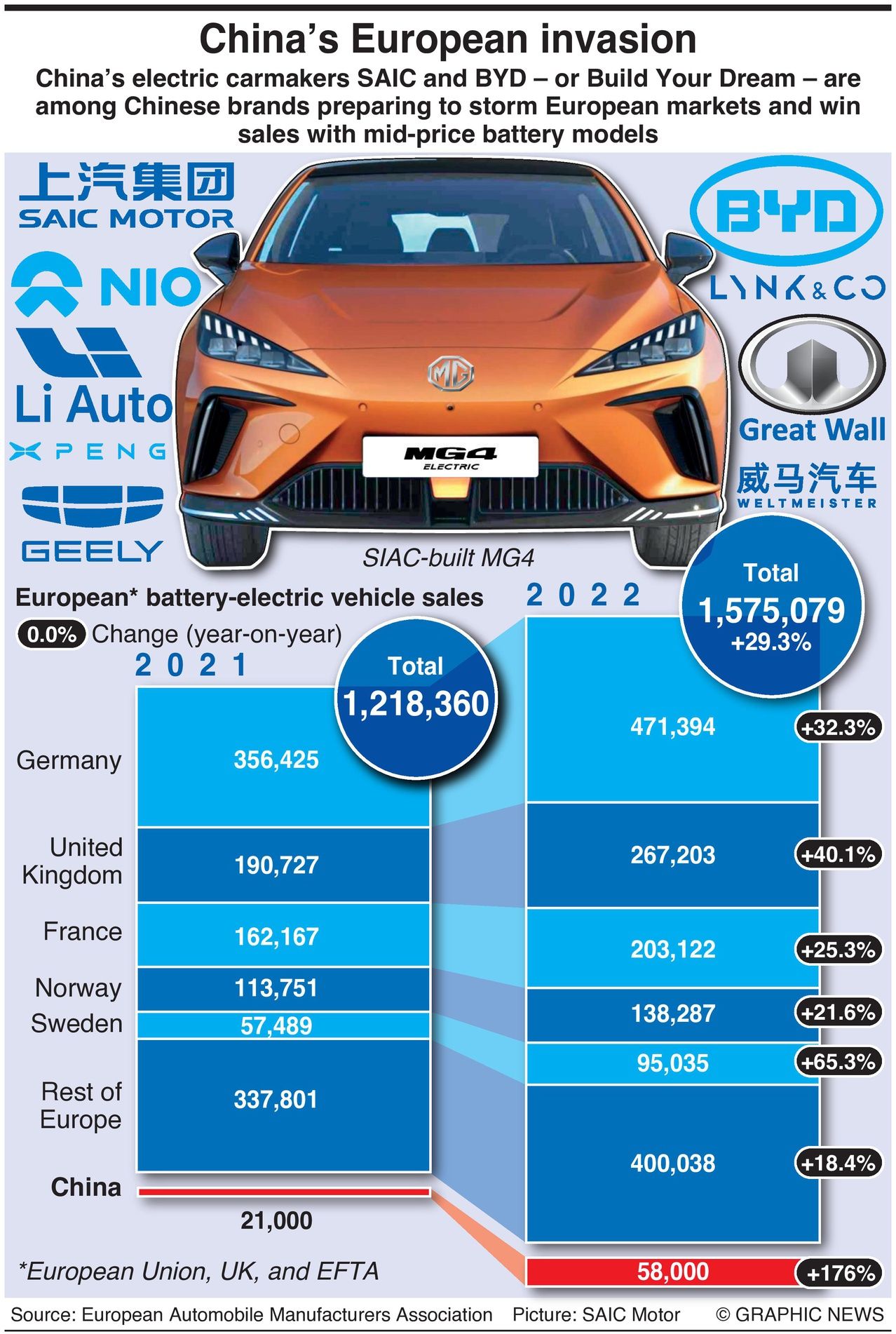 China’s electric carmakers SAIC and BYD – or Build Your Dream – are among Chinese brands preparing to storm European markets and win sales with mid-price battery models.