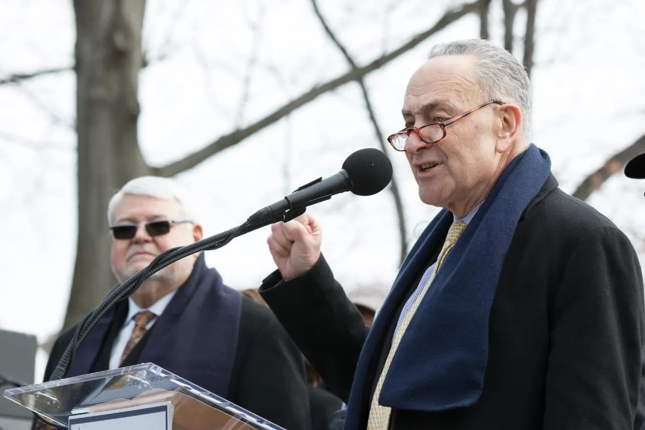 “Well, look, the bottom line is lots of people are frustrated,” Schumer answered. “But the best way to protest what Trump is doing is doing what we are doing and many senators and many congressmen are doing, and that is organizing against these horrible policies of calling Social Security a ponzi scheme and then cutting, slashing people’s social security offices.”