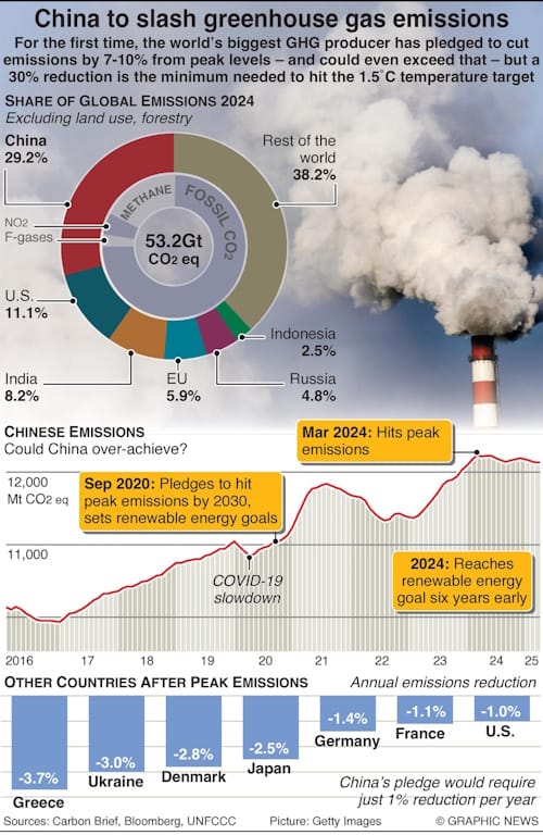 For the first time, the world’s biggest GHG producer has pledged to cut emissions by 7-10% from peak levels – and could even exceed that – but a 30% reduction is the minimum needed to hit the 1.5˚C temperature target.