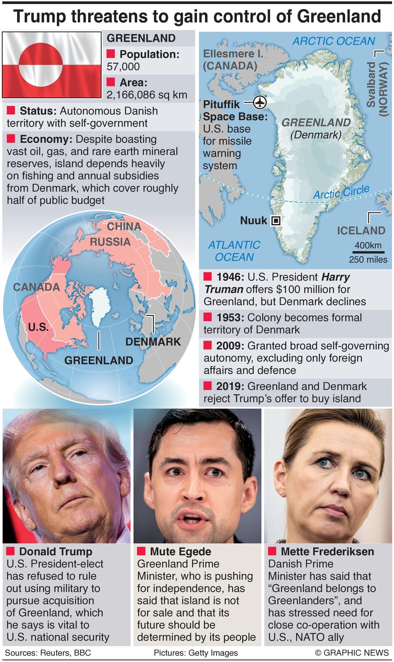 Greenland is the world's largest island, with an area of approximately 836,330 square miles. The Greenland Ice Sheet covers a substantial portion of the area, with depths reaching about 2 miles. The population is relatively small, around 56,000, and they predominantly live on the southwest coast. Indigenous Inuit have inhabited the island for more than 3,000 years and are largely involved in traditional hunting and fishing. Assimilating such a small population as an unincorporated U.S. territory wouldn't be difficult if Trump offered the same benefits to Greenland residents as those enjoyed by the Virgin Islands.