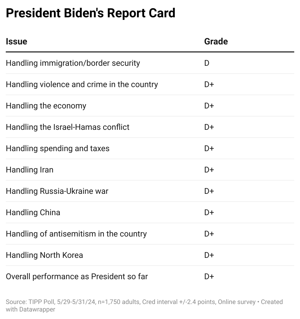 Based on the above grades given by Americans, here is President Biden’s report card.