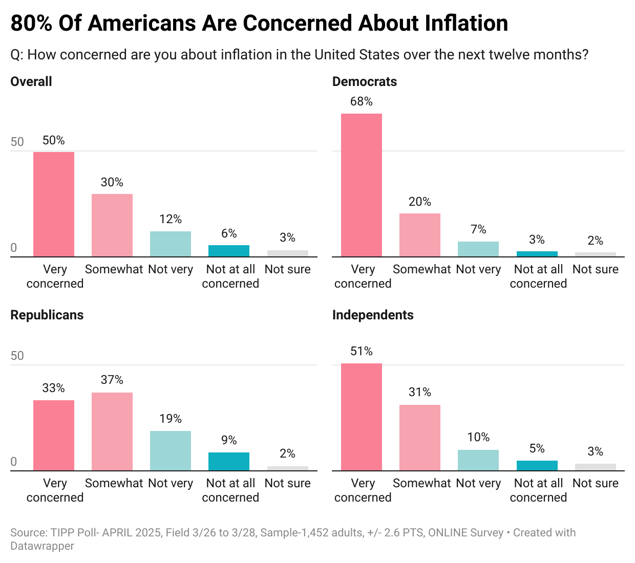 The survey showed that 80% are worried about inflation—50% are very concerned, and another 30% are somewhat concerned.