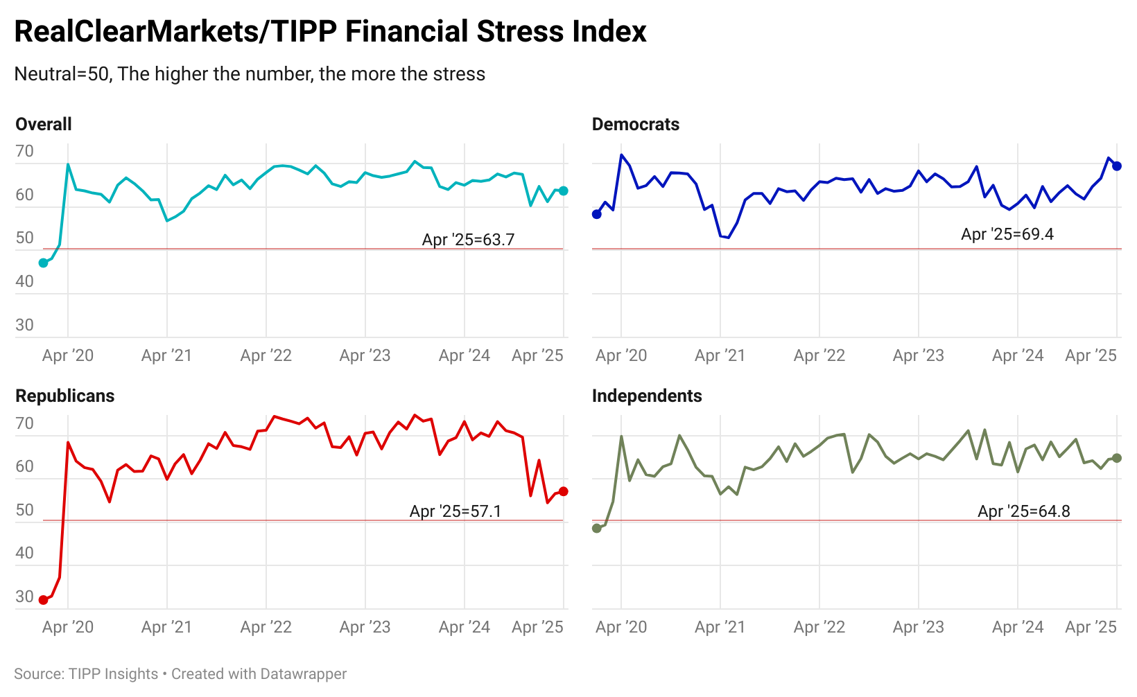 RCM/TIPP also releases our companion index, known as the RCM/TIPP Financial-Related Stress Index, the only metric to track the financial stress felt by Americans monthly.
