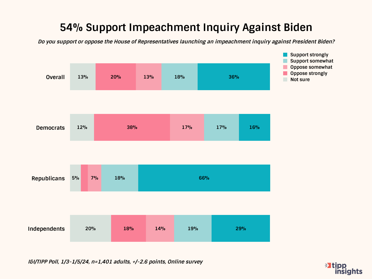 I&I/TIPP asked one more question: “Do you support or oppose the House of Representatives launching an impeachment inquiry against President Biden.”