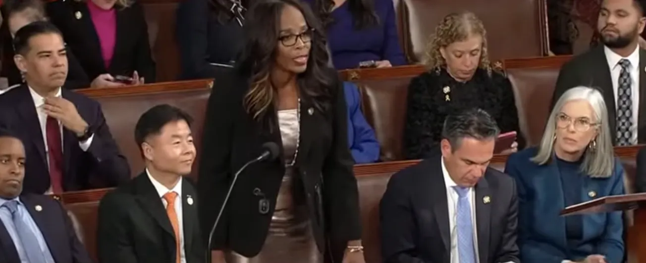 Plaskett rebuked Bessent during the hearing for interrupting her as she spoke. He was interrupting her to clarify facts. Plaskett spoke for approximately five minutes before Bessent was given the opportunity to respond.