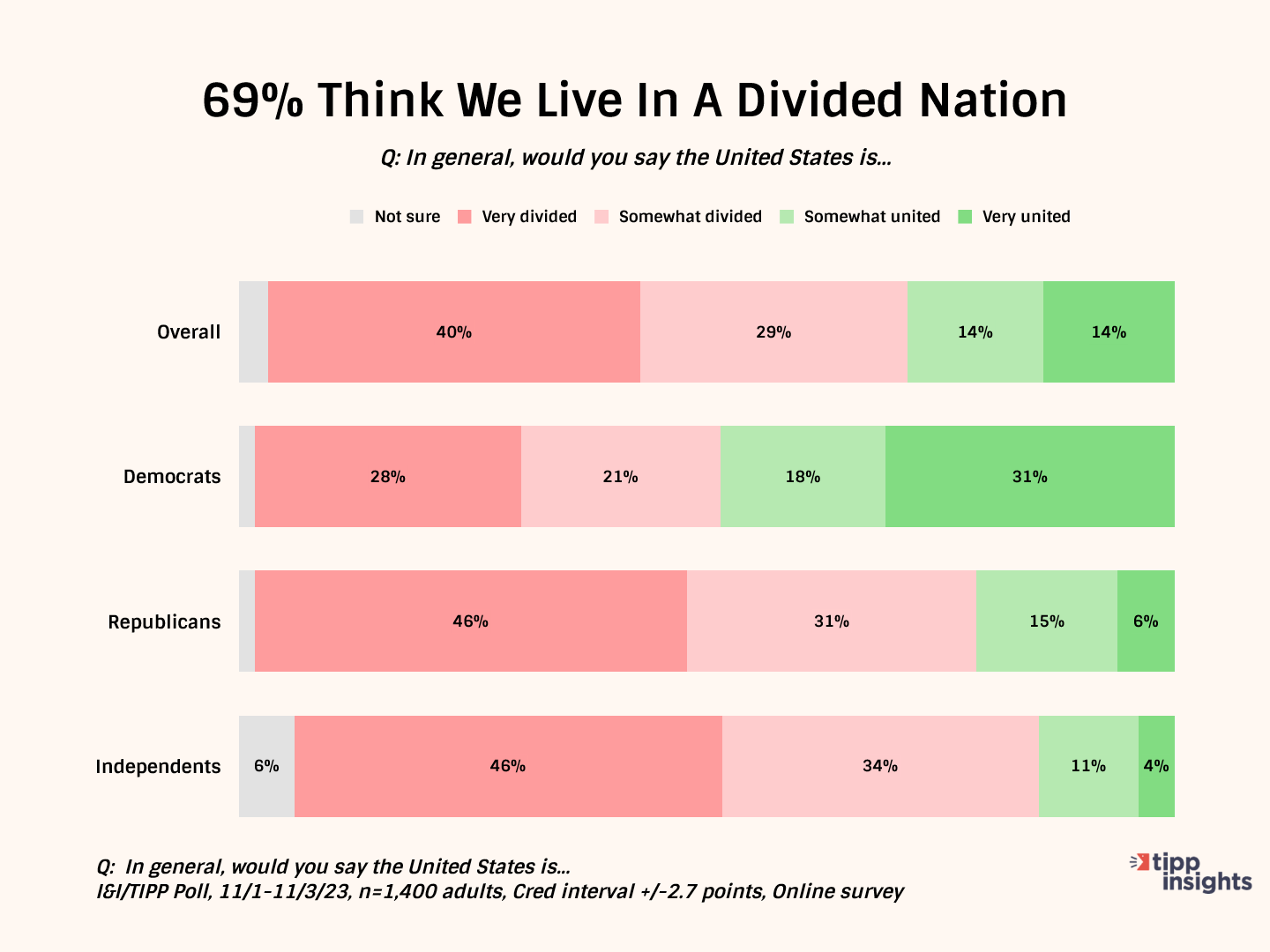 We live in divisive times, it seems. Bitter rhetoric and open rage over political events, ideologies and culture have become common. As a result, our country's inhabitants now admit we are no longer unified, as the latest I&I/TIPP data clearly show.